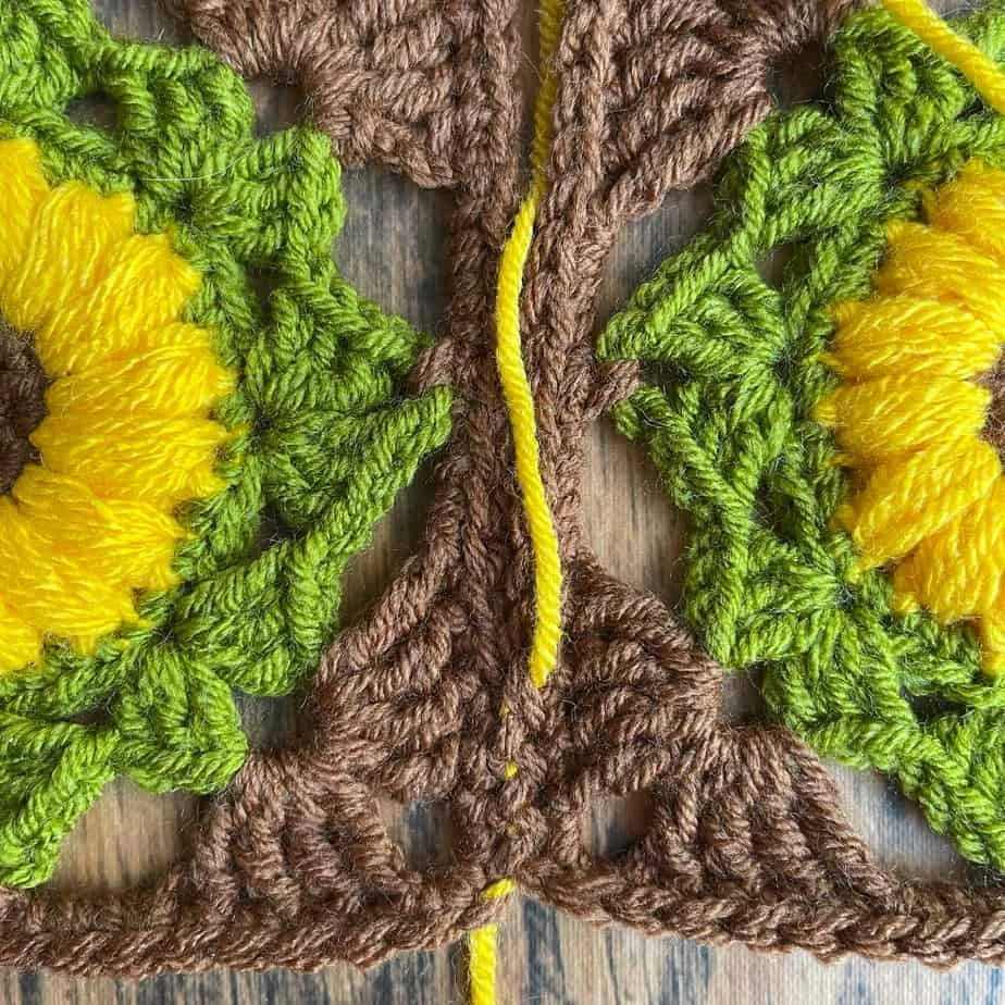 8. Mattress stitch join - this is the first of two joining methods that utilise sewing with a tapestry needle over crocheting to join blanket squares together. This joining method is flat and virtually invisible making it a very popular choice. As you can see in this photo, courtesy of Nana’s Crafty Home, very little of the contrasting yarn can be seen. Click here for the full tutorial.