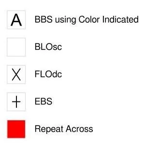 Row 1: With Color A, BBS in 1st, BLOsc across, EBS in last.