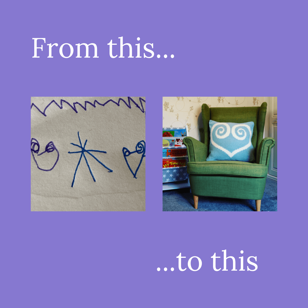 Of course, as a busy mom, I also have to be prepared for inspiration to strike at any moment, even when I'm not actively seeking it out. This is why I try to always keep a notebook handy to jot down any ideas that come to me, no matter how random or fleeting they may seem. This does not always work however as I have to defend my notebook from my minibeasts (AKA children) who want to draw all over it! Although, as in the case of my daughter's doodles, sometimes this works out in my favour – this is how the Aphrodite cushion cover and Aphrodite C2C blanket came to be.